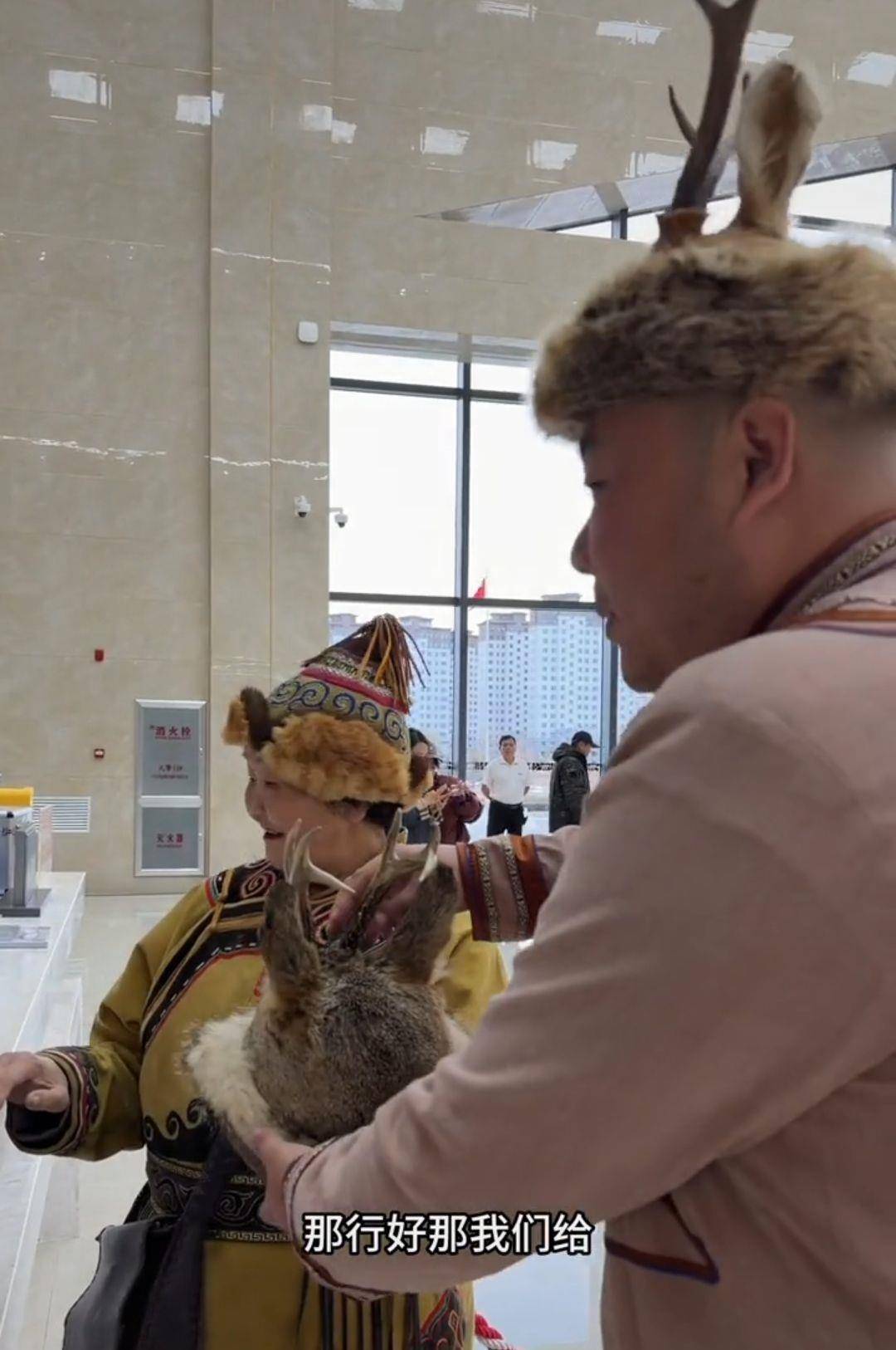 李京阳称,为了让更多人了解这份文化宝藏,他们此前带着狍角帽、狍皮衣等非遗物件,跑遍了西安、甘肃、四川、洛阳等地开启“全国巡演”模式。前不久,有网友在飞机上偶遇他们的视频受到了广泛关注。不少网友调侃他们是“瑞幸打工人”。瑞幸官号下场凑热闹,在网友发布的视频下方留言“感受到了一种神秘的召唤”。李京阳告诉极目新闻记者,目前他们已经和瑞幸联动合拍了视频。